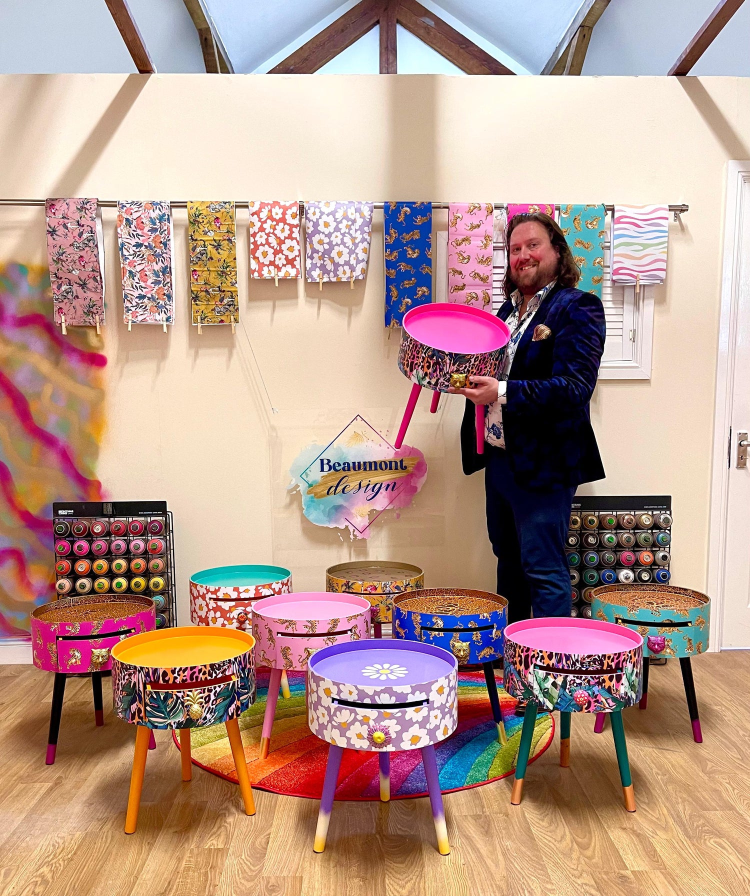 We exist and you are on this page because after spending 6 months turning our house into the maximalist paradise and gin palace known as The Electric Penguin (on Instagram @theelectricpenguin) we were really struggling to find the bedside tables of our dreams, so one week with nothing else to do I decided to have a crack at surprising my wife, and the first Beaumont Design Original was born.