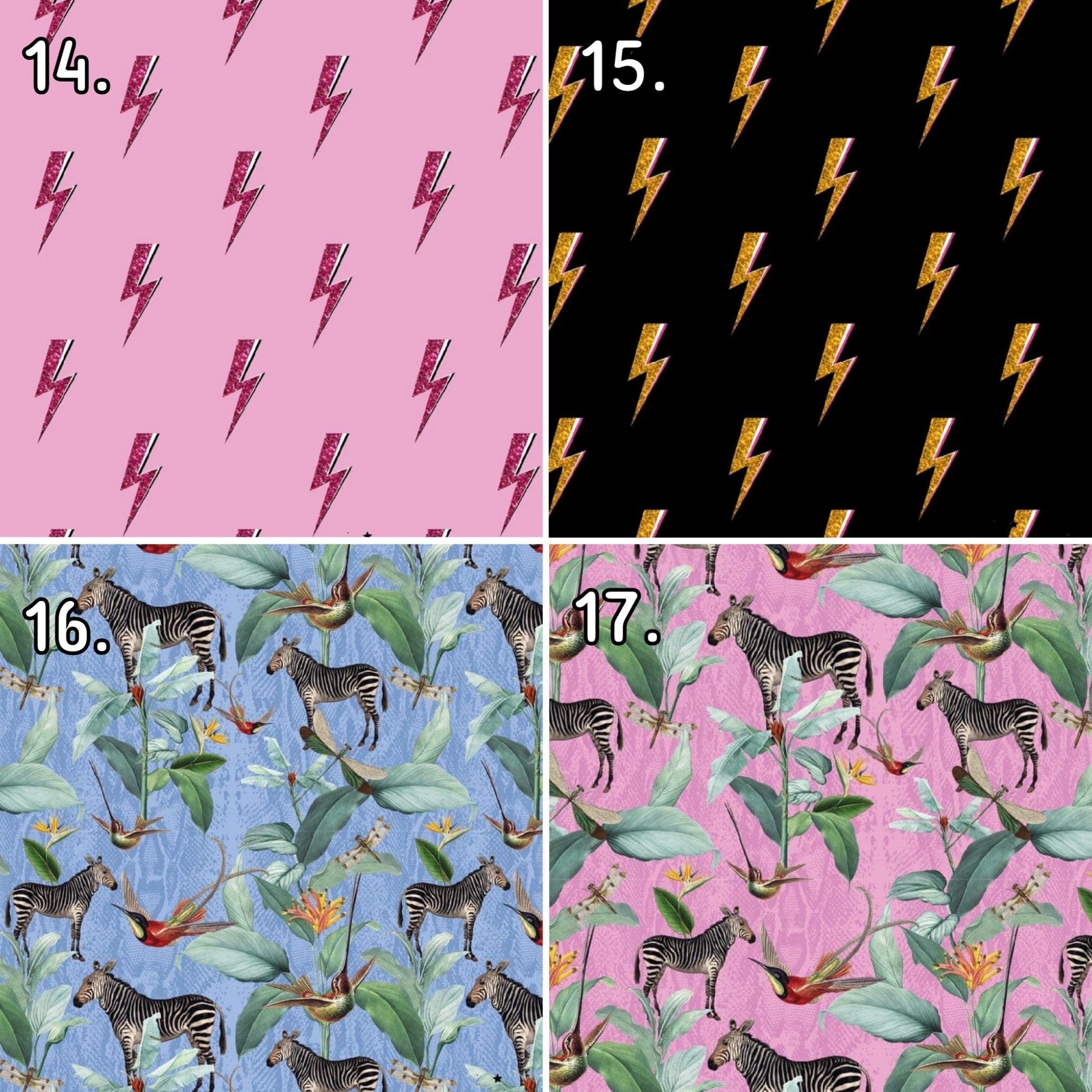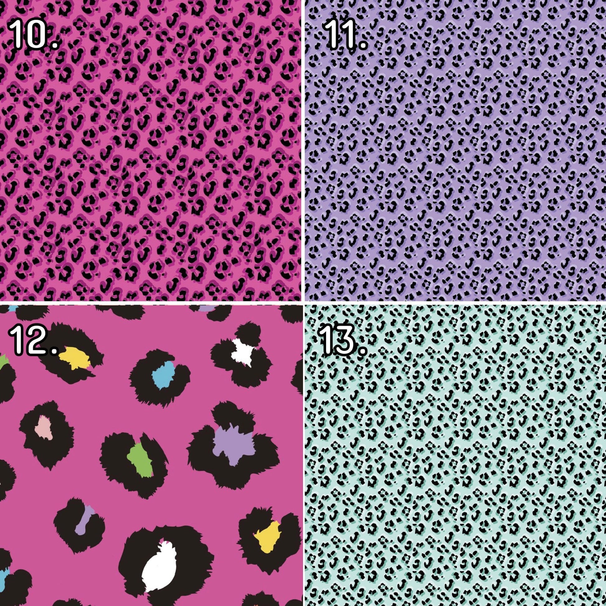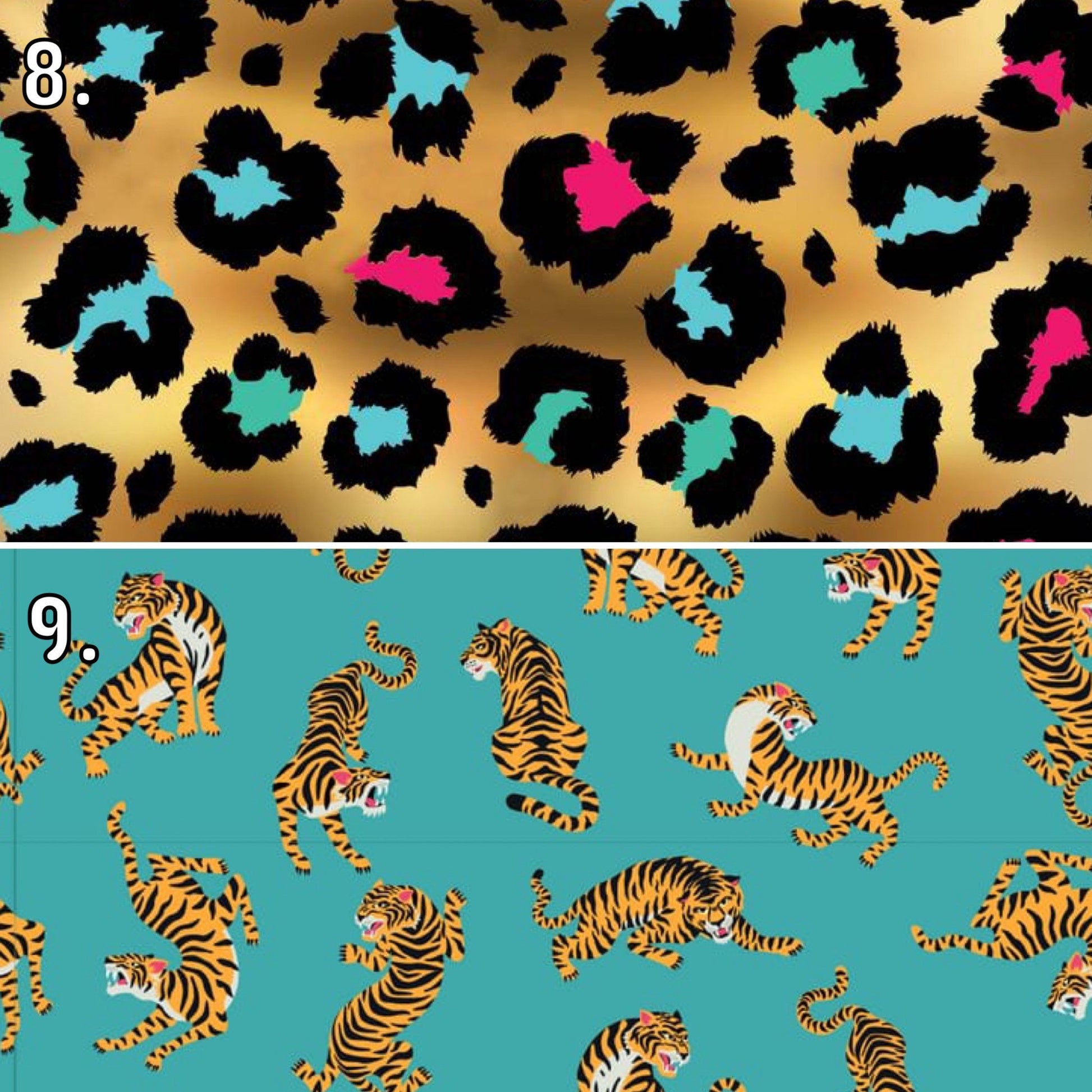 Beautiful side table in blue pattern with flamingos and cheetahs, tropical floral pattern.