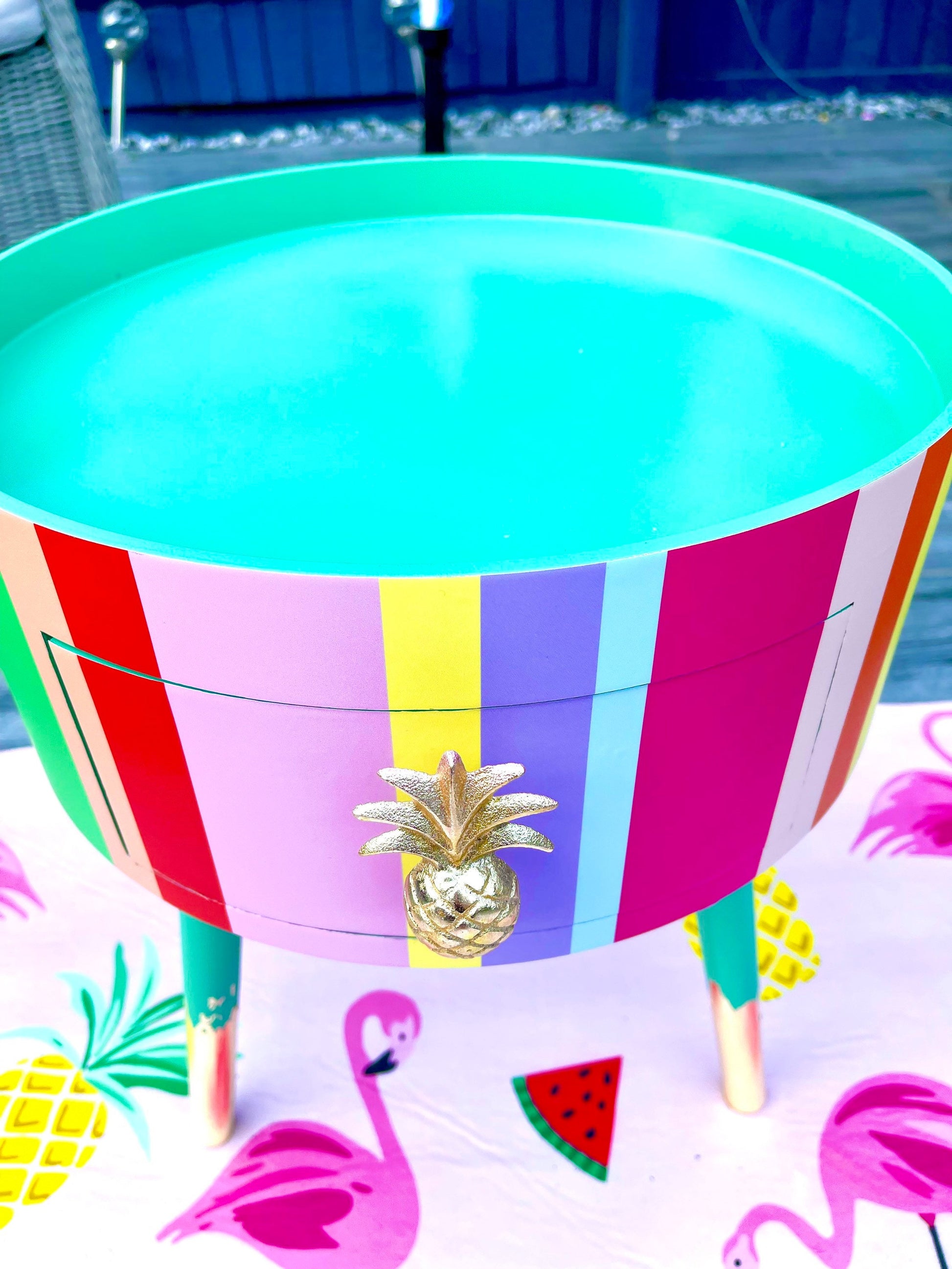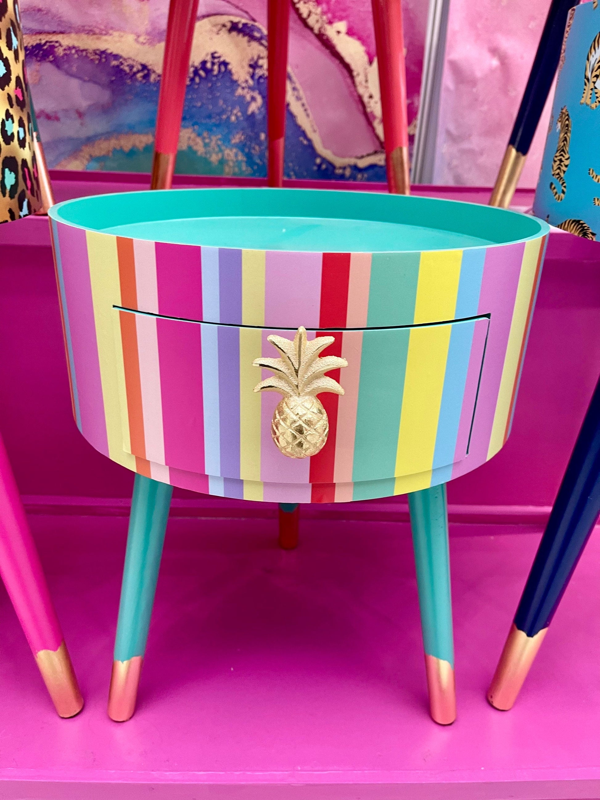Beautiful pastel rainbow multicoloured bed side table for sale